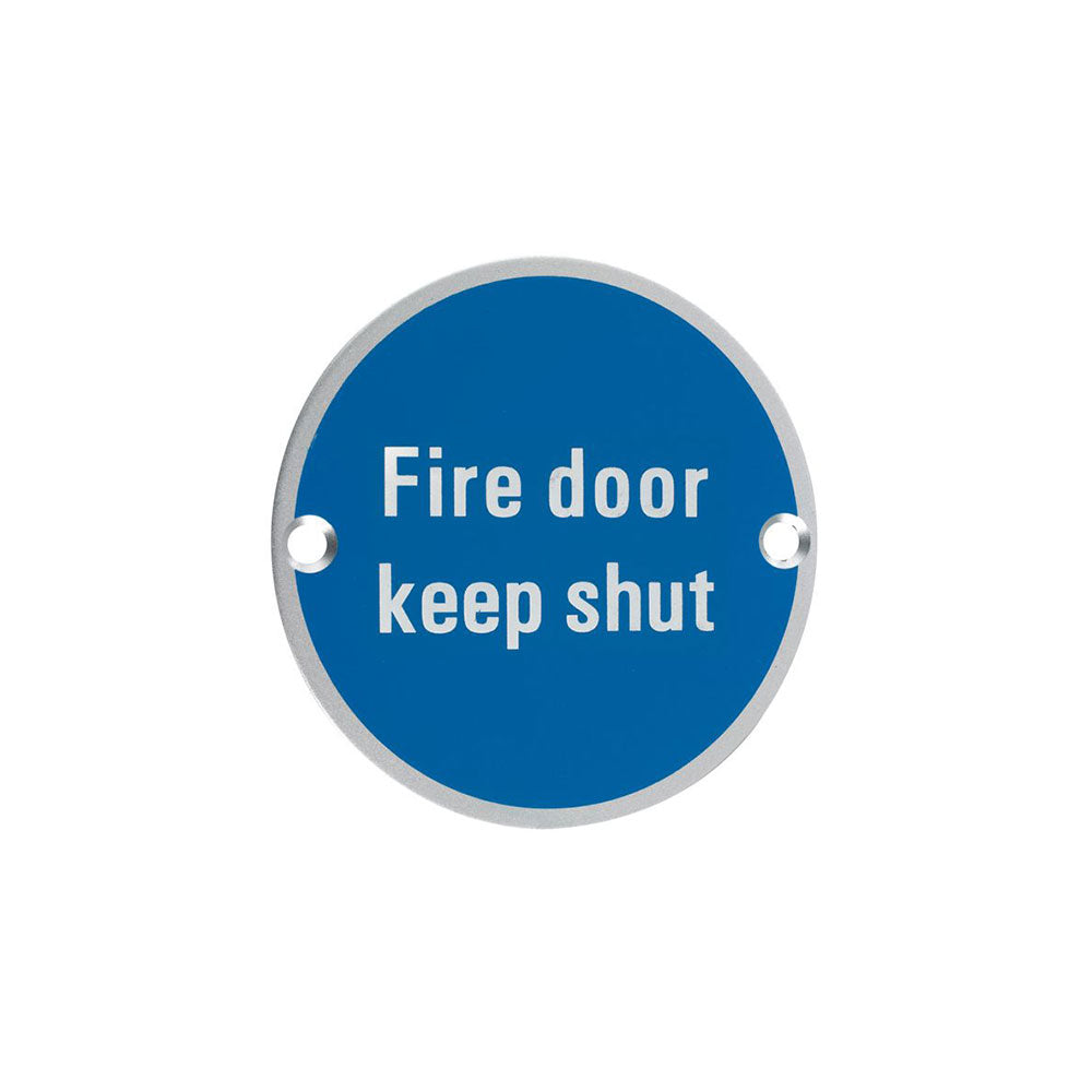 Fire Door Keep Shut Sign 76mm Diameter Satin Stainless Steel. 76mm Diameter Sign "Fire Door Keep Shut" ideal to ensure fire exits are always closed. Checked and packed by one of our own team so its right when it arrives.