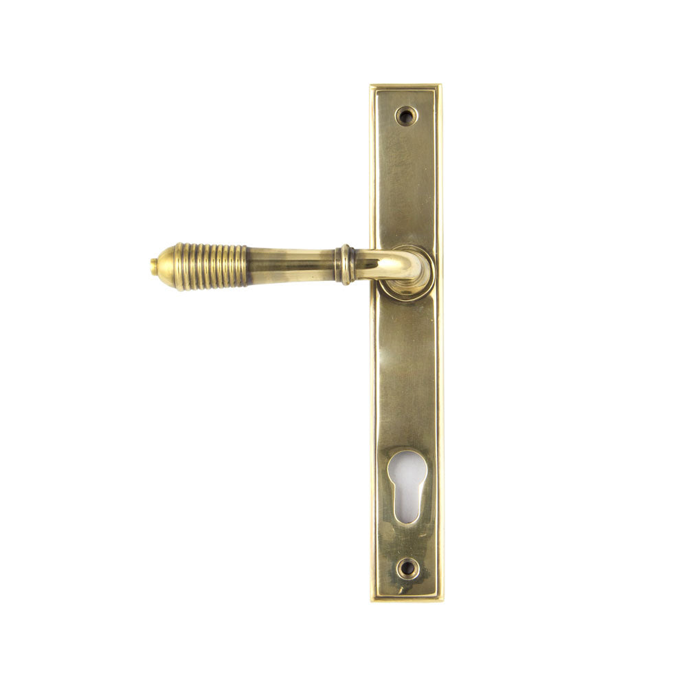 Anvil Reeded Aged Brass Multipoint Lever Handle 92mm Centres