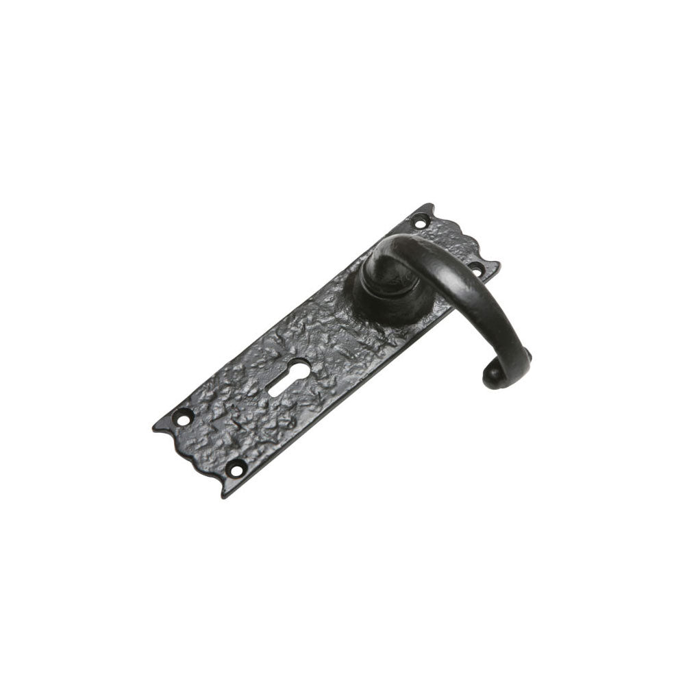 Kirkpatrick 2451 Antique Black Lever Lock Handle Set - (Backplate 165 x 50mm). The Lever Handle 2451 features a classic scalloped edge design and scroll handle making it the perfect finishing touch to any interior or exterior door. This style of handle is available in a Bathroom, Latch and Lock option. The lever handle 2451 is spring loaded and has a two coat protective finish like all Kirkpatrick products. Checked and packed by one of our own team so its right when it arrives.