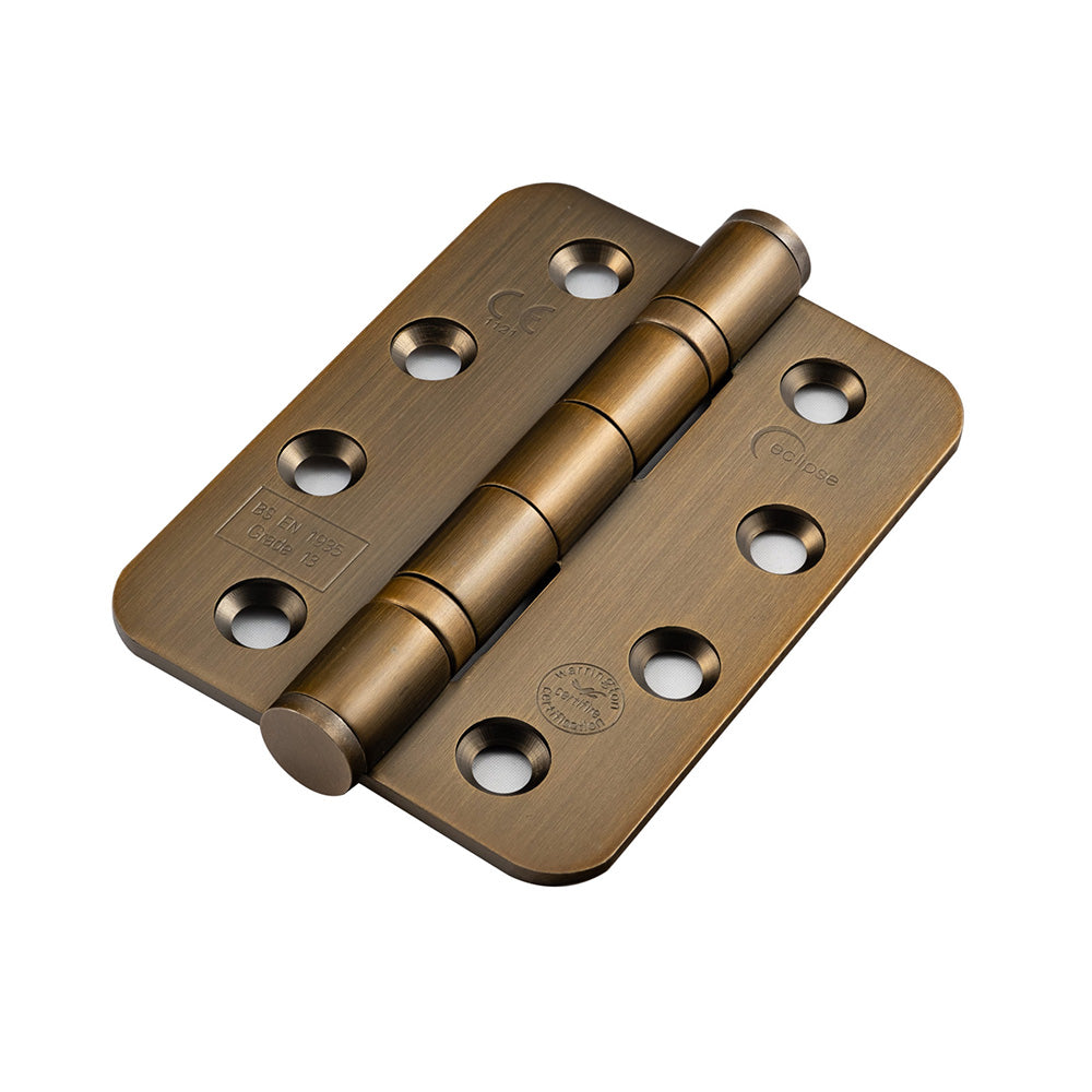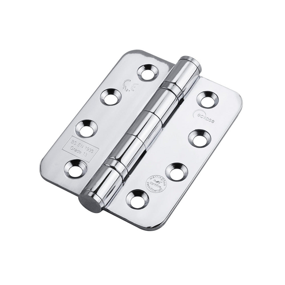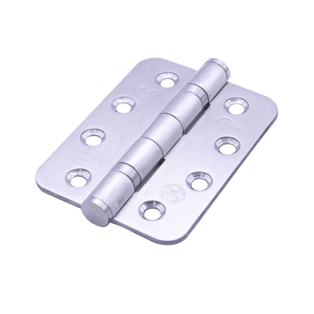 Radius Corner Eclipse Ball Bearing Hinge 102 x 76 x 3.0mm 201 Grade Stainless Steel. Sold as a pair. One of the most commonly used hinge types, Ball Bearing Butt Hinges are widely used in commercial and domestic applications and are ideal for areas of high usage. These hinges have a wide knuckle to house the ball bearings but offer smooth action and high weight loading and are fire rated to BS EN 1634-1:2000. Checked and packed by one of our own team so its right when it arrives.