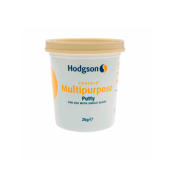 Hodgsons Multipurpose Glazing Putty - 2kg. Hand-applied glazing compound for bedding and external fronting single glass into primed softwood, hardwood and steel frames and sealed hardwood and concrete which will subsequently be painted. Checked and packed by one of our own team so its right when it arrives.