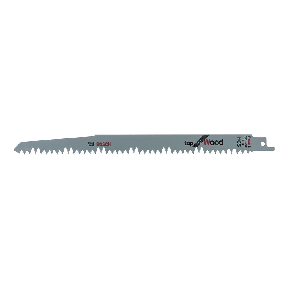 S1531L Recip Blade Bosch <190mm Wood Cut Pack/5. Reciprocating saw blades for straight cuts in wood (packet of five). Coarse, straight cut. Suitable for <190mm wood, pruning green wood, firewood etc. Checked and packed by our own team so its right when it arrive
