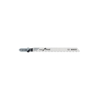 T101BR Jigsaw Blades Bosch Straight Clean Wood Reverse 3-30mm Cut Pack/5. Fine jigsaw blades for reverse straight cuts in wood (packet of five). Fine, straight cuts. Suitable for 3-30mm fibre boards, chipboard, softwoods and plywood. Checked and packed by our own team so its right when it arrives.