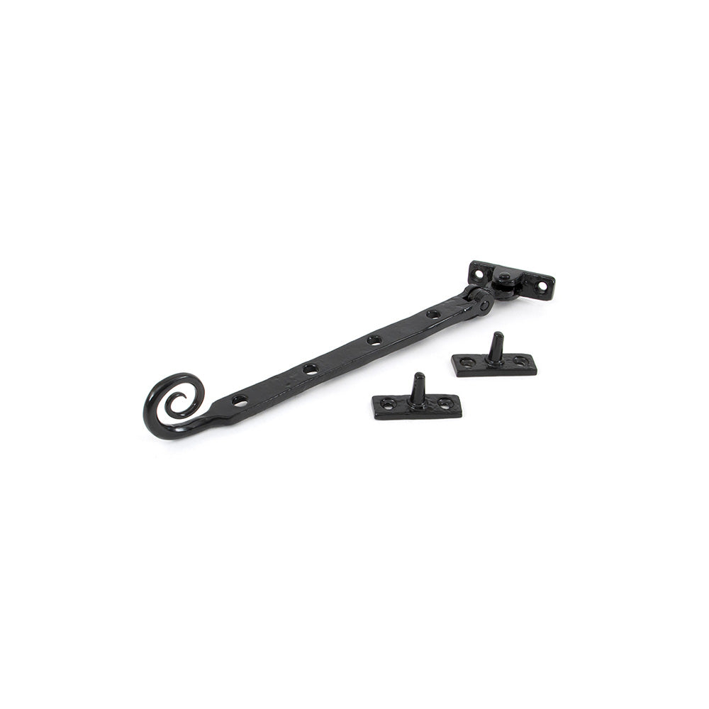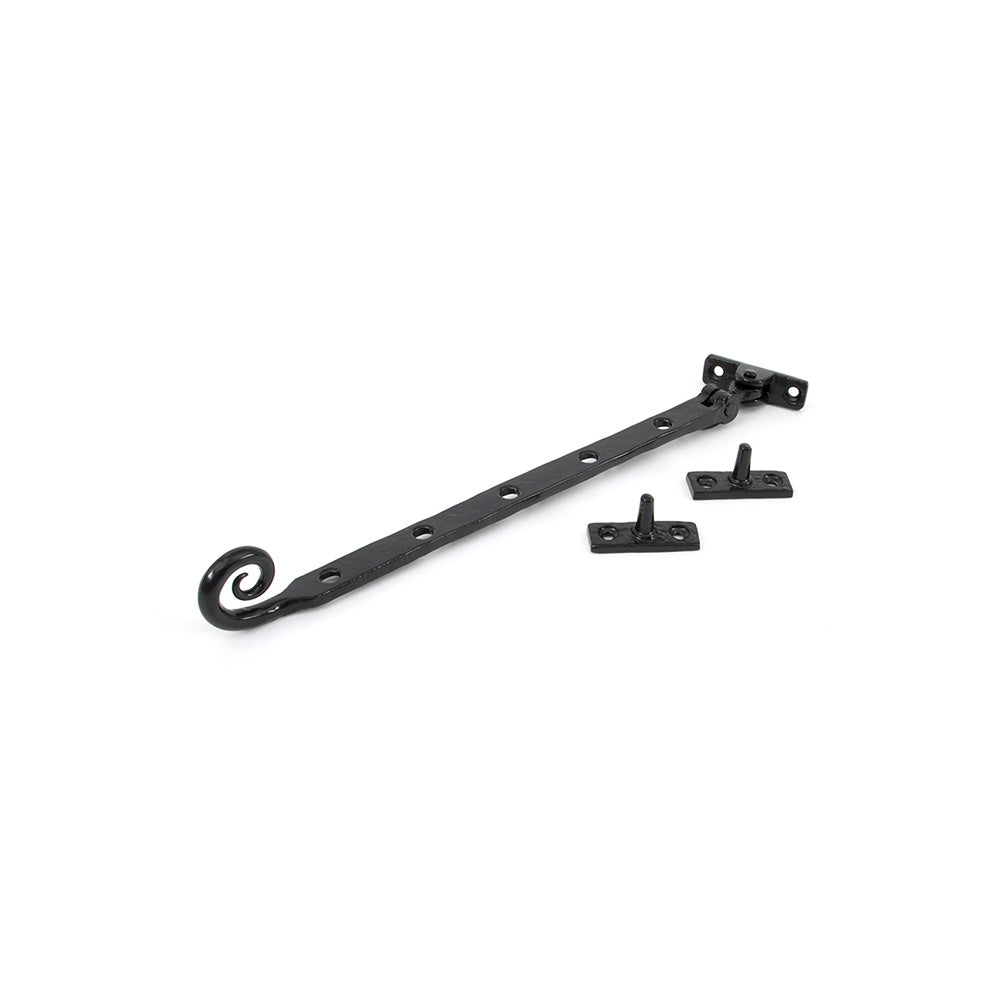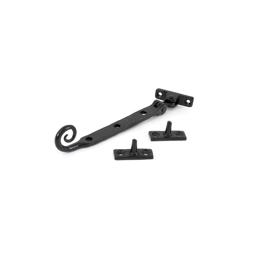 Anvil Black Monkeytail Stay Handmade. The monkeytail design lends itself perfectly to a cottage environment and is fashioned on an anvil to a beautiful delicate point to the curl not achievable by mass production ie casting. The stay is supplied with two pins, necessary fixing screws and is forged from steel which leaves a smoother finish. The stays can be matched up with other Monkeytail designs including the Monkeytail Fastener to create a uniform look. Overall Length (B): 222mm, Stay Arm (A): 193mm, Fixing Plate: 57mm x 16mm. Checked and packed by one of our own team so its right when it arrives.