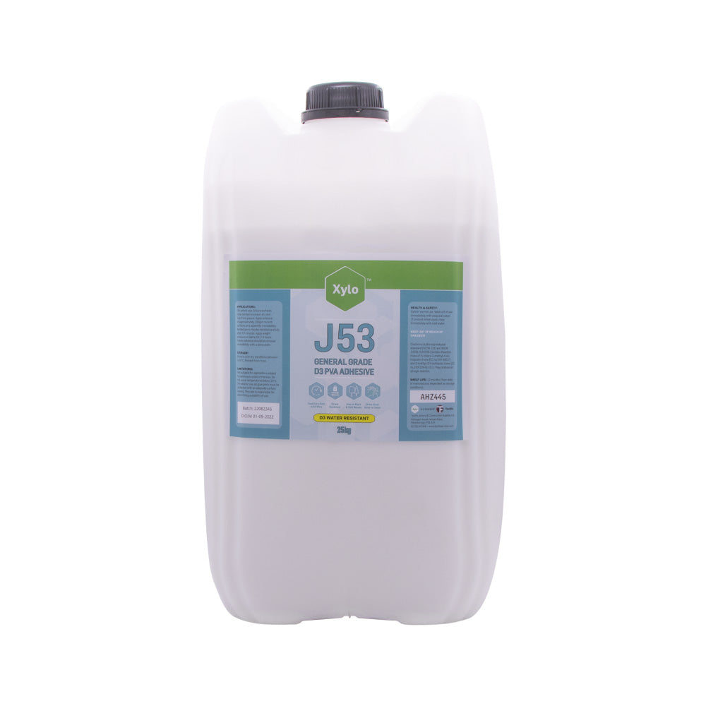 Xylo D3 Standard Grade J53 PVA Woodglue. Xylo J53 is a one part D3 Grade Internal PVA emulsion adhesive, specially formulated for bonding wood providung a high strength, impact resistant bond for all general woodworking applications. Checked and packed by our own team so it's right when it arrives.