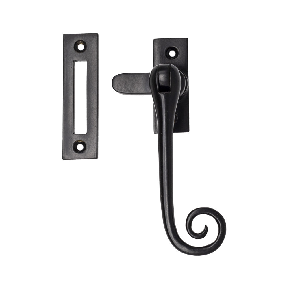 Hardwick Heritage Curlytail Casement Fastener with Mortice Plate Forged Black
