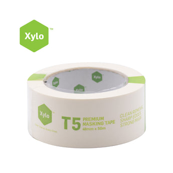 Premium White Masking Tape Xylo T5 50m Roll. A high quality masking tape for clean removal and sharp edges. Checked and packed by one of our team so its right when it arrives.